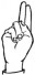 На ћирилици написано АНГЕЛИНА ПАВЛИЦА састоји се из 15 слова [?]. Исписано ћириличном једноручном азбуком за глувонеме: